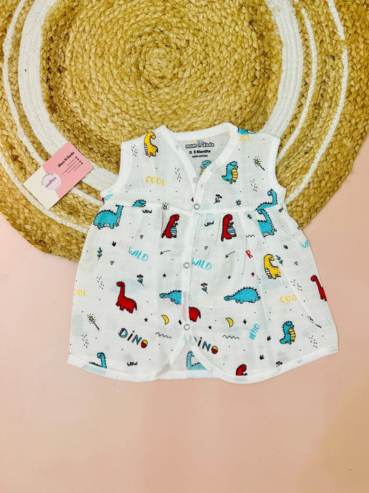 Organic Muslin Baby Frock for Girls - Double Layer Dino Print